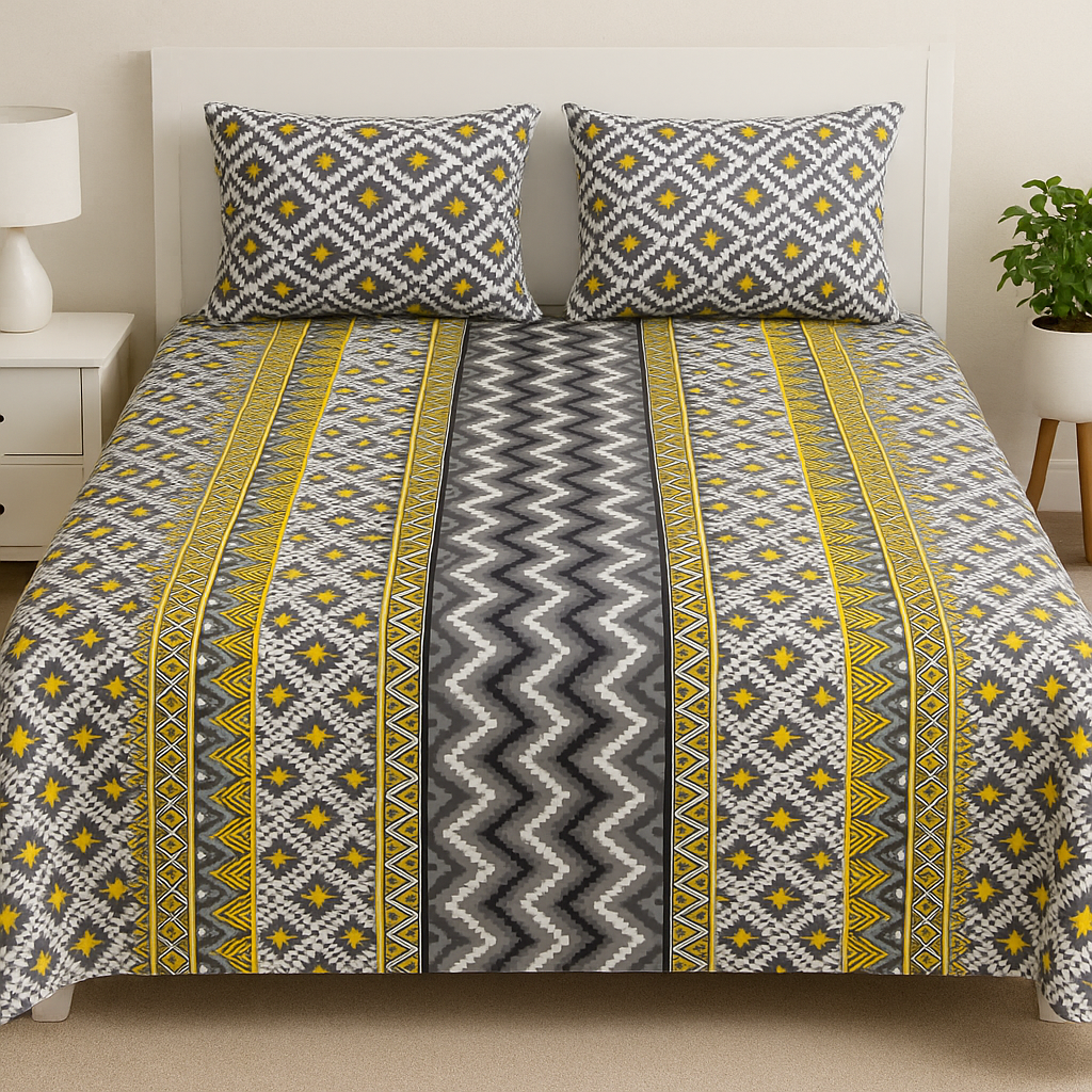 ZigZag Sunshine Cotton Fitted Bedsheet Set