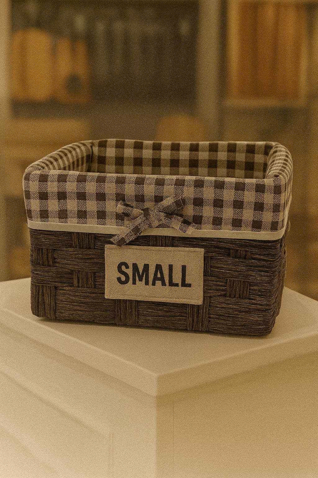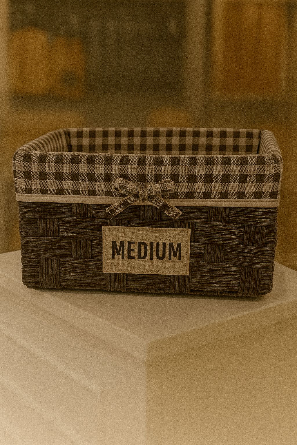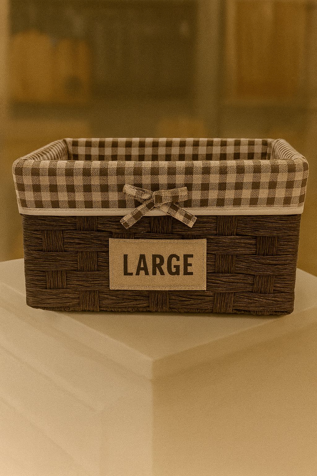 Upgrade your home organisation with our Classic Checker Woven Basket Set. These beautifully crafted baskets feature a natural woven design paired with a stylish brown & white gingham fabric lining. The soft fabric is removable and washable, ensuring convenience, hygiene, and long-lasting use.