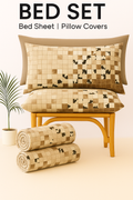Redefine your bedroom with our Export Quality Modern Checkered Bed Set, designed for those who appreciate contemporary style with premium comfort. Featuring a unique mosaic checkered design in warm beige, brown, and subtle black accents, this set brings a bold yet sophisticated touch to your décor.