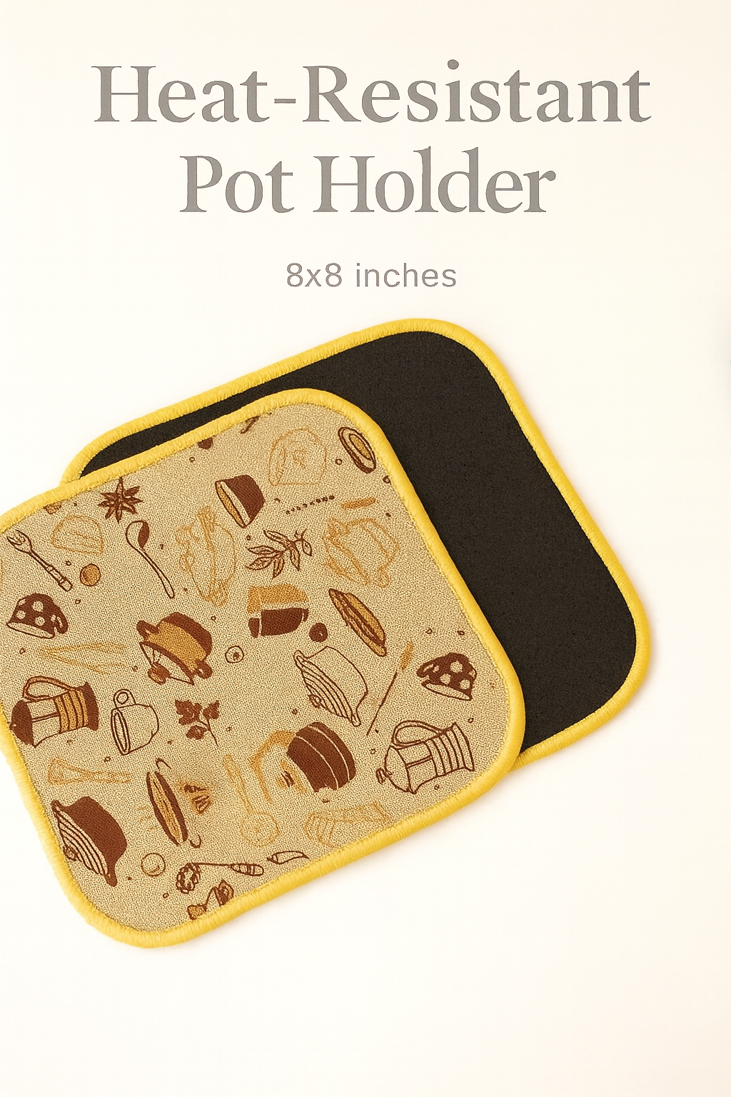 Crafted with a durable cotton front featuring a charming kitchen-themed print and a non-slip rubber back, this mat provides excellent heat resistance and stability. Ideal for placing hot pots, pans, or serving dishes, it prevents heat damage to your surfaces while adding a cozy aesthetic to your kitchen setup.