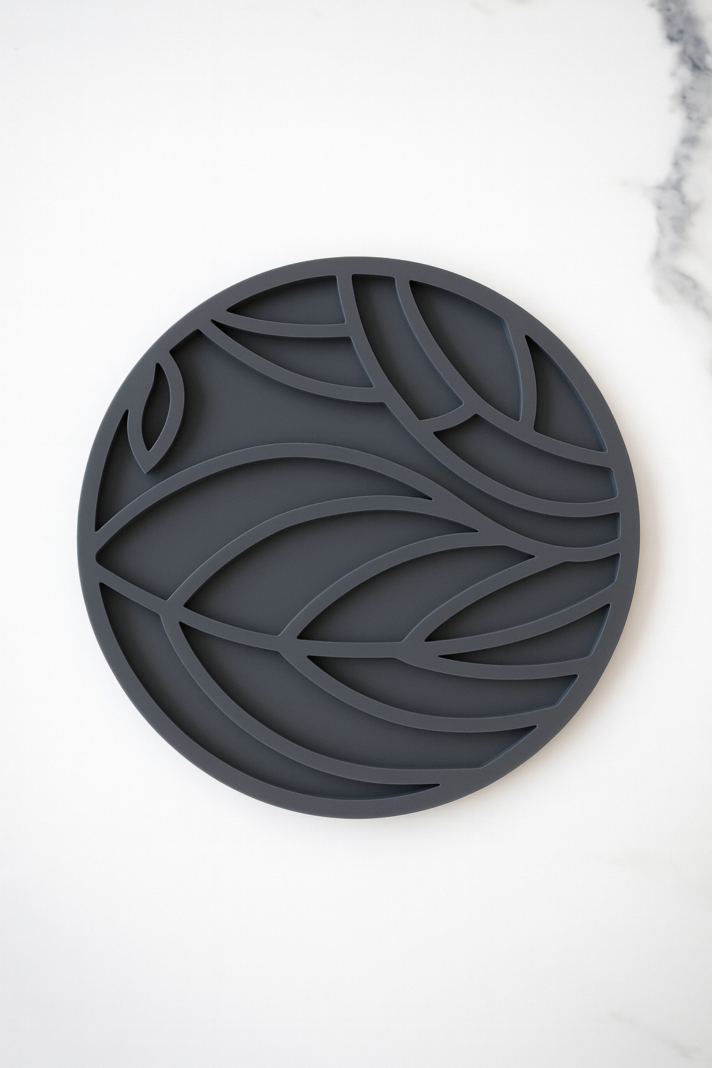 Keep your kitchen surfaces safe and stylish with this 8x8 inch silicone heat-resistant mat. Designed with a modern leaf pattern, this non-slip, flexible trivet is perfect for placing hot pots, pans, or serving dishes.
