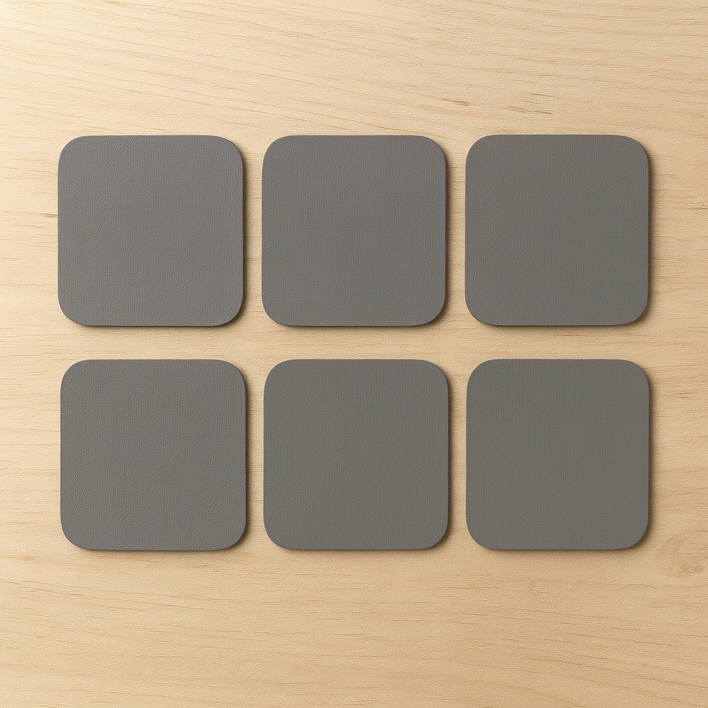 Modern Leather Coaster Set with Non-Slip Surface – 6 Pieces