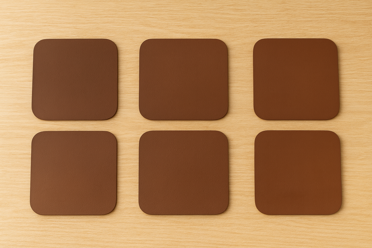 Modern Leather Coaster Set with Non-Slip Surface – 6 Pieces